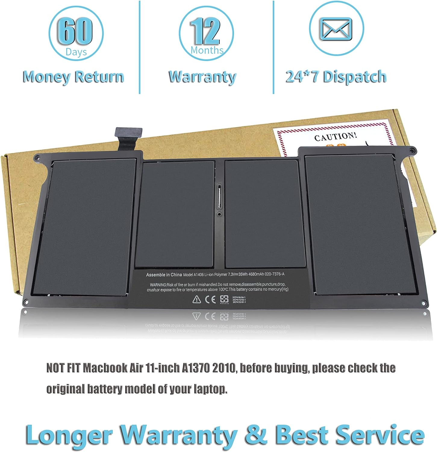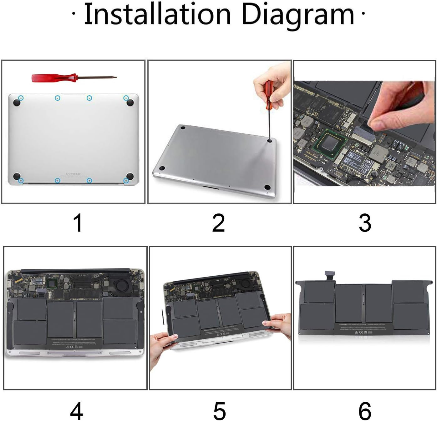 | Support Laptops | Battery For Apple MacBook Air 11 A1406 A1370 A1495 A1465 (Mid 2011-Mid 2012). |