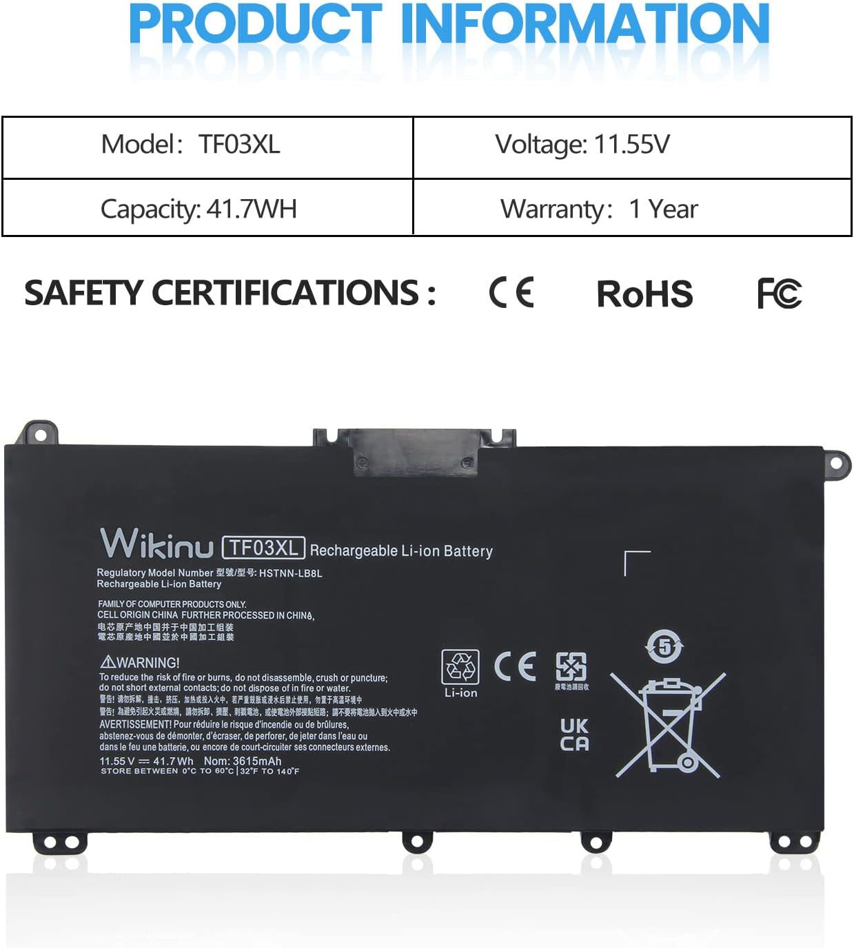| Support Laptops | TF03XL, HT03XL Battery For HP Pavilion 14-BF 14-BK 15-CC 15-CD 15-CK 17-AR 14-CE 14-CF 14-CK 14-MA 14Q-CS 14S-CF 14S-CR 15-CS 15-CU 15-CW X360-14-CD Series. |